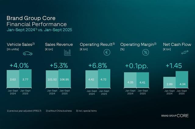 2025年10月31日、Volkswagenは、Volkswagenグループの中核を担う「ブランドグループ・コア(Brand Group Core)」が、2025年1〜9月期において販売台数、売上高、営業利益のいずれも前年を上回る結果を記録したと発表した。一方で、米国向け輸入関税や電気自動車(BEV)の増産に伴うコスト、さらにフォルクスワーゲンブランドの再構築費用が利益を押し下げた。